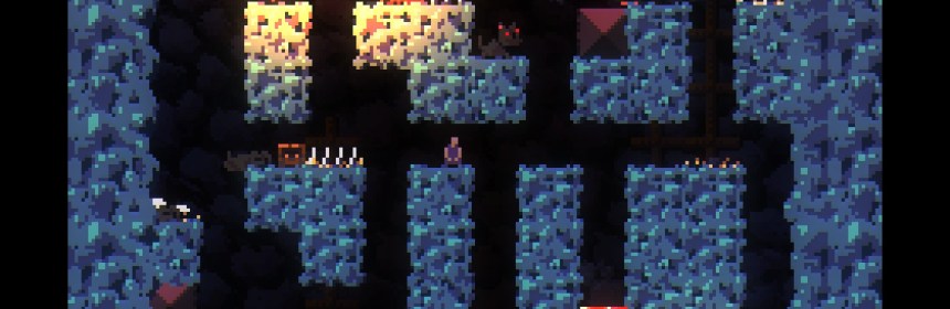 Part of the unique feel of TowerClimb comes from the mysterious, parable-like setup for the game. There are immense stone towers, people keep trying to climb them, and no one knows what’s at the top. You control a never-ending series of unfortunates who challenge the tower, mantling up through floor after deadly floor. It plays a lot like a reverse Spelunky, with your character able to run, jump, scale walls, and crawl along ceilings in search of the exit high above. In place of treasure are tools like crates and springs, and golden berries that can be traded for potions that let you double-jump, break blocks, and teleport.