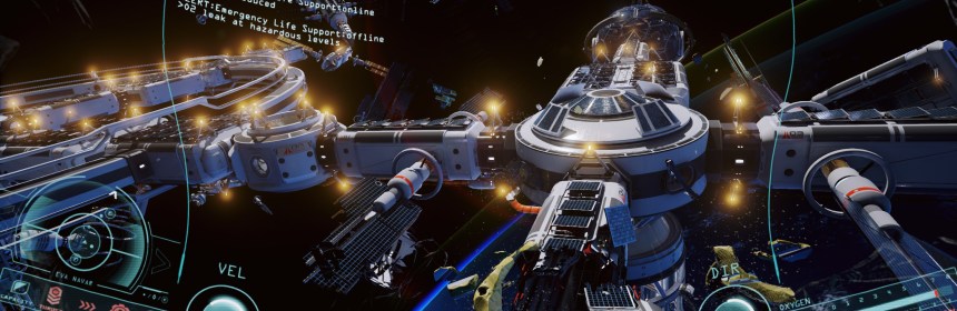 This is where the other ill-advised part of the design rears its ugly head, the fact that you are slooooooooow. I really cannot overstate how slow the pace of this game is, how gently you drift everywhere, how it takes whole minutes to float out to satellites to tap their comms. Because of the sorry state of your EVA suit your thrusters consume oxygen as well, so the less you try to jet around the better. That just makes you even slower and less engaged as you lock in a direction and wait to drift to your destination. There’s a fair number of collectibles to find, from audio logs to SSDs, but the interminable travel is hugely discouraging to exploration.